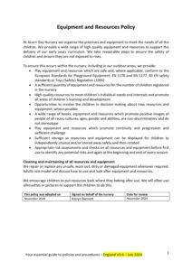 Equipment and Resources Policy England July 2024